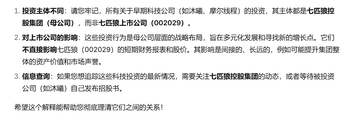 很多人傻傻分不清,投资是母公司的事情,不是七匹狼本身。相当于母公司投了七匹狼,但