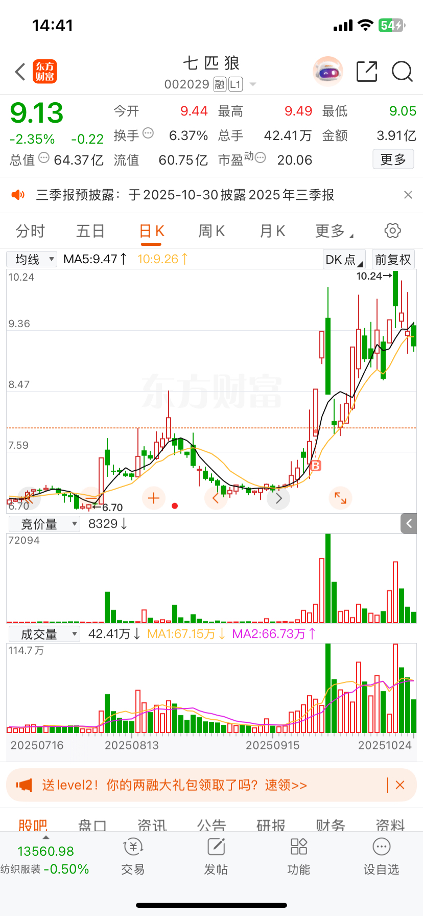 $七 匹 狼(SZ002029)$ 牛哦,买了一个月了