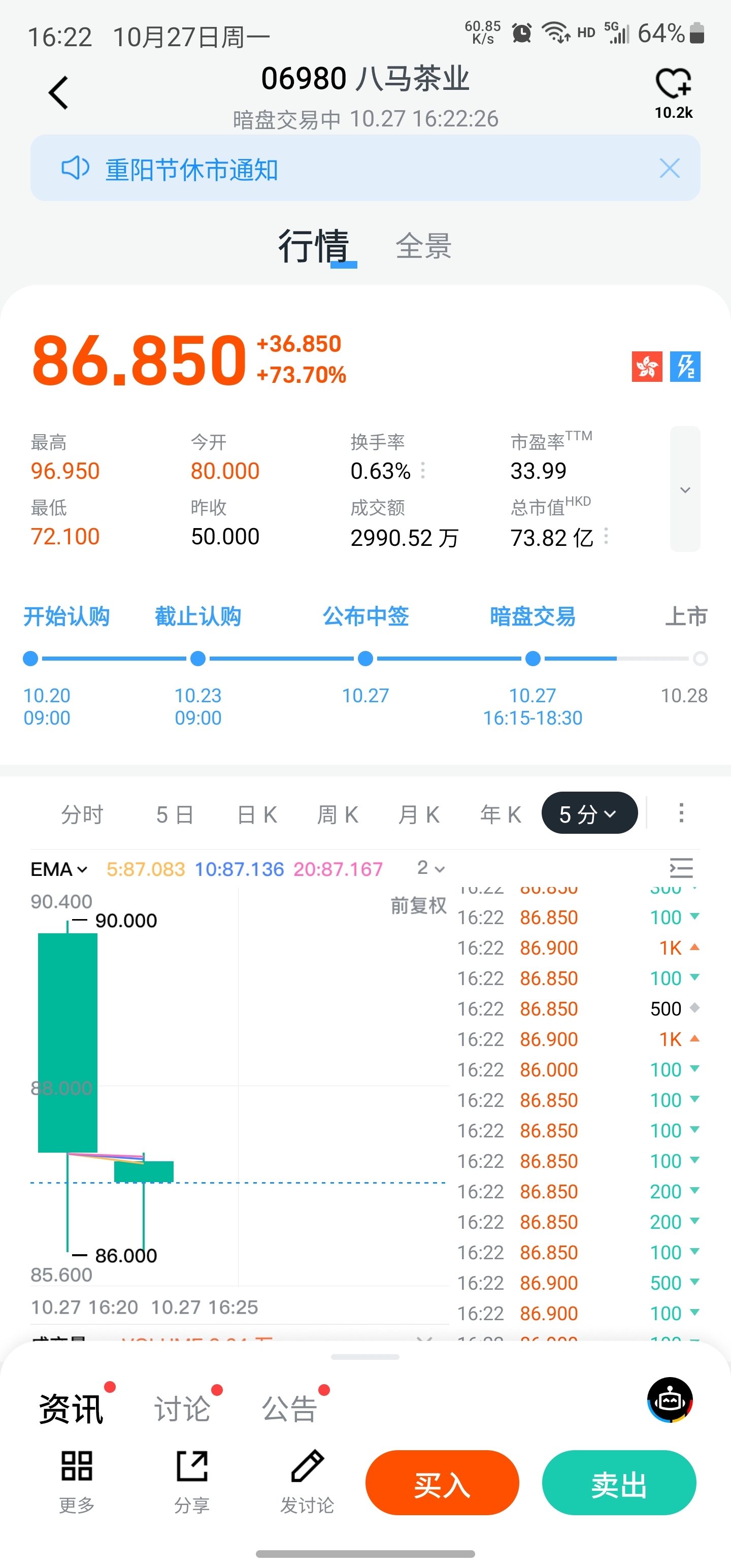 暗盘交易涨了70%,希望明天让我回本安全离开!东家有喜,主力明天拉个吉祥数字9.