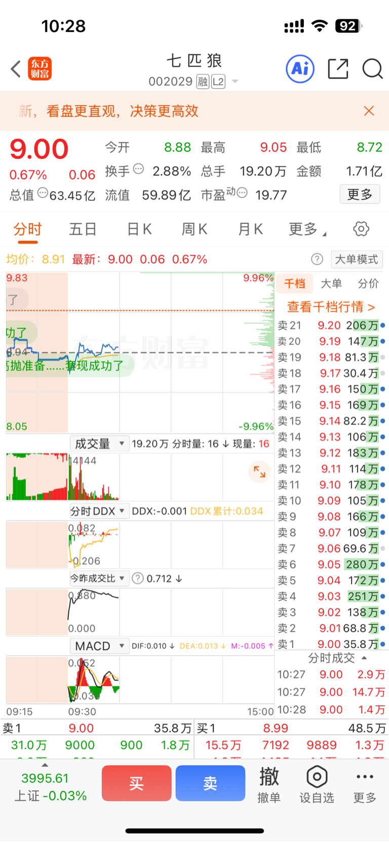$七 匹 狼(SZ002029)$ 这怎么可能是散户单 。就是硬压 , 就是玩 ,不是大家选股问题 。只是有些脏东西