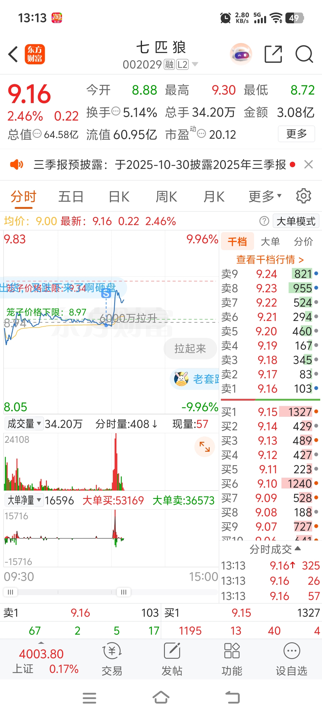 $七 匹 狼(SZ002029)$ 拉及股害死人!