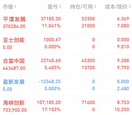 说回正题,盘前文章的思路很明确了,退潮第二天,风险仍然比较大。但可以左侧博弈穿越票。老秦昨天已经拿了3只,亚士被淘汰,无脑走掉。合富中国和平潭发展都是开盘超预期的,按计划持有并加苍,两只顺利板。载体就是福建板块,那么还套利了20CM的海峡创新。