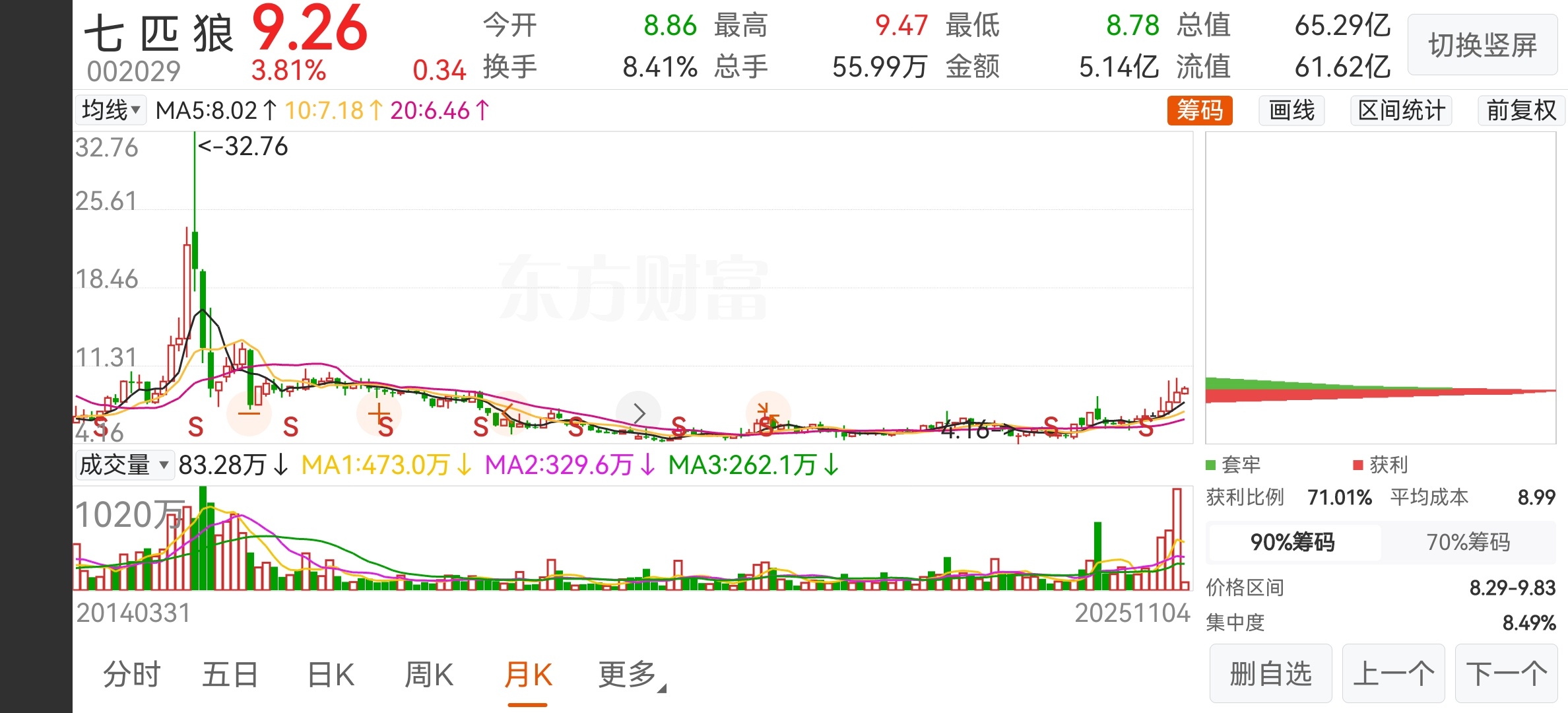 七匹狼月K线打开了,主力,柚子,散户们团结一下,不要乱T好不?!