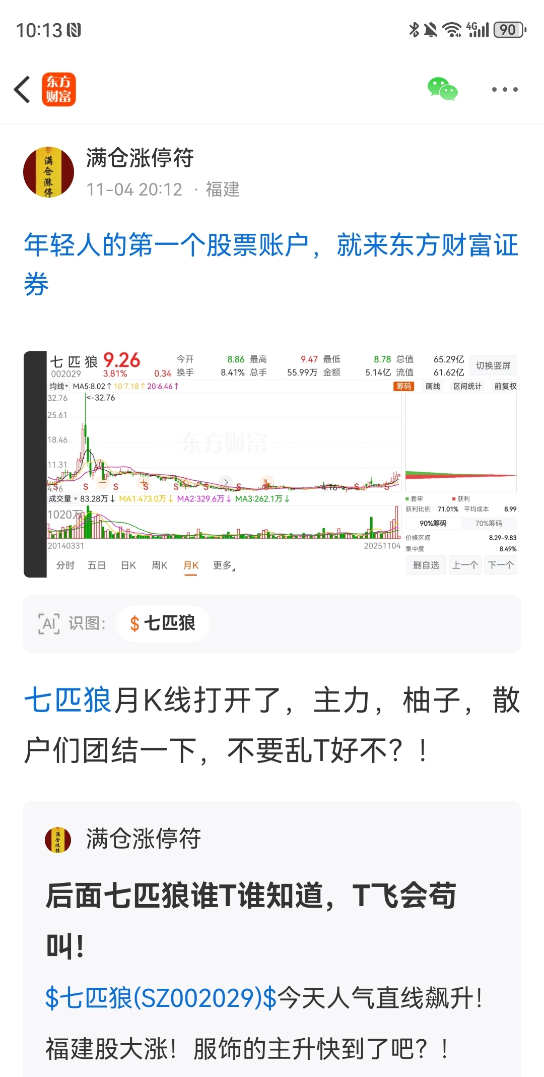 $七 匹 狼(SZ002029)$ $森马服饰(SZ002563)$ $福龙马(SH603686)$ 我不仅说对了主升浪,还说对了顺序?!主力们,听我的挣得盆满钵满!