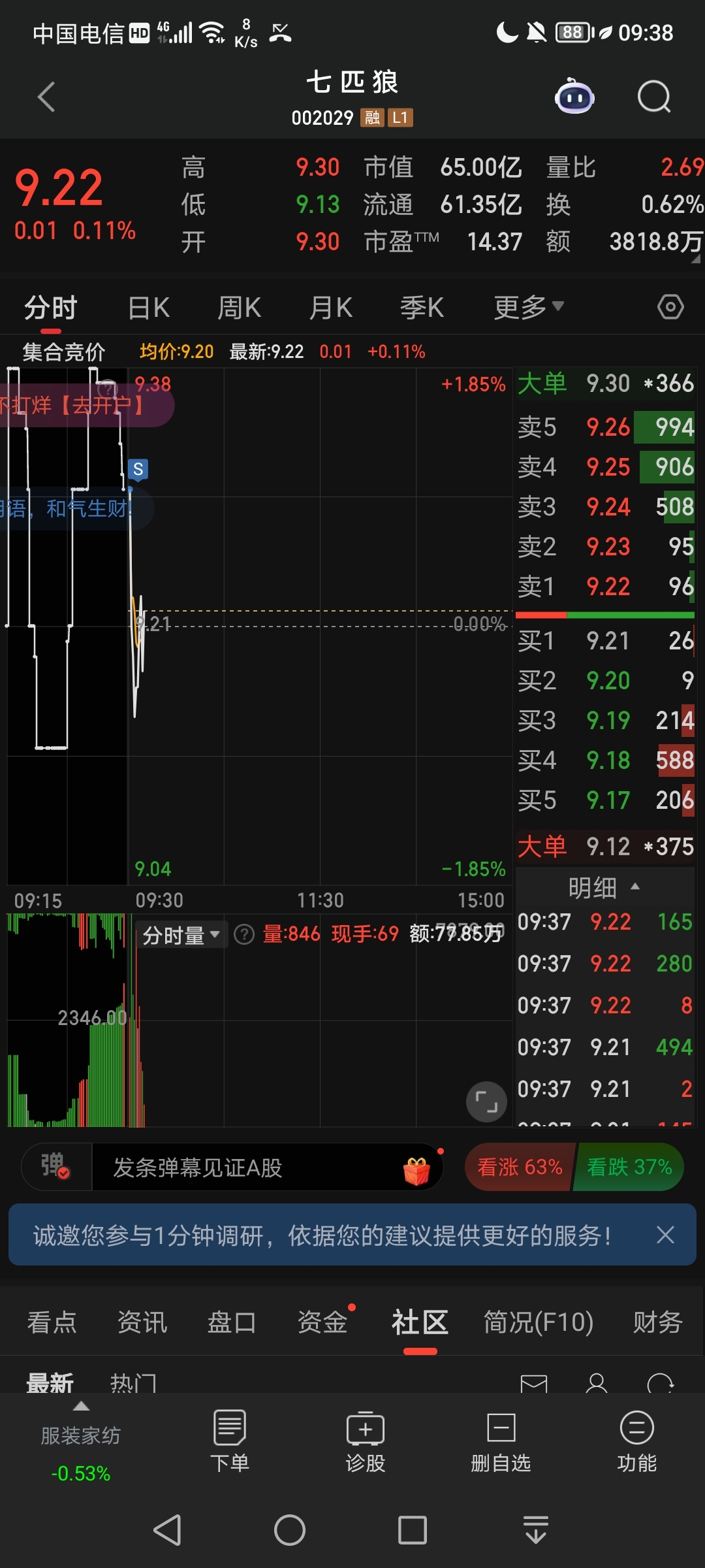 $七 匹 狼(SZ002029)$ 哪个掉毛接了