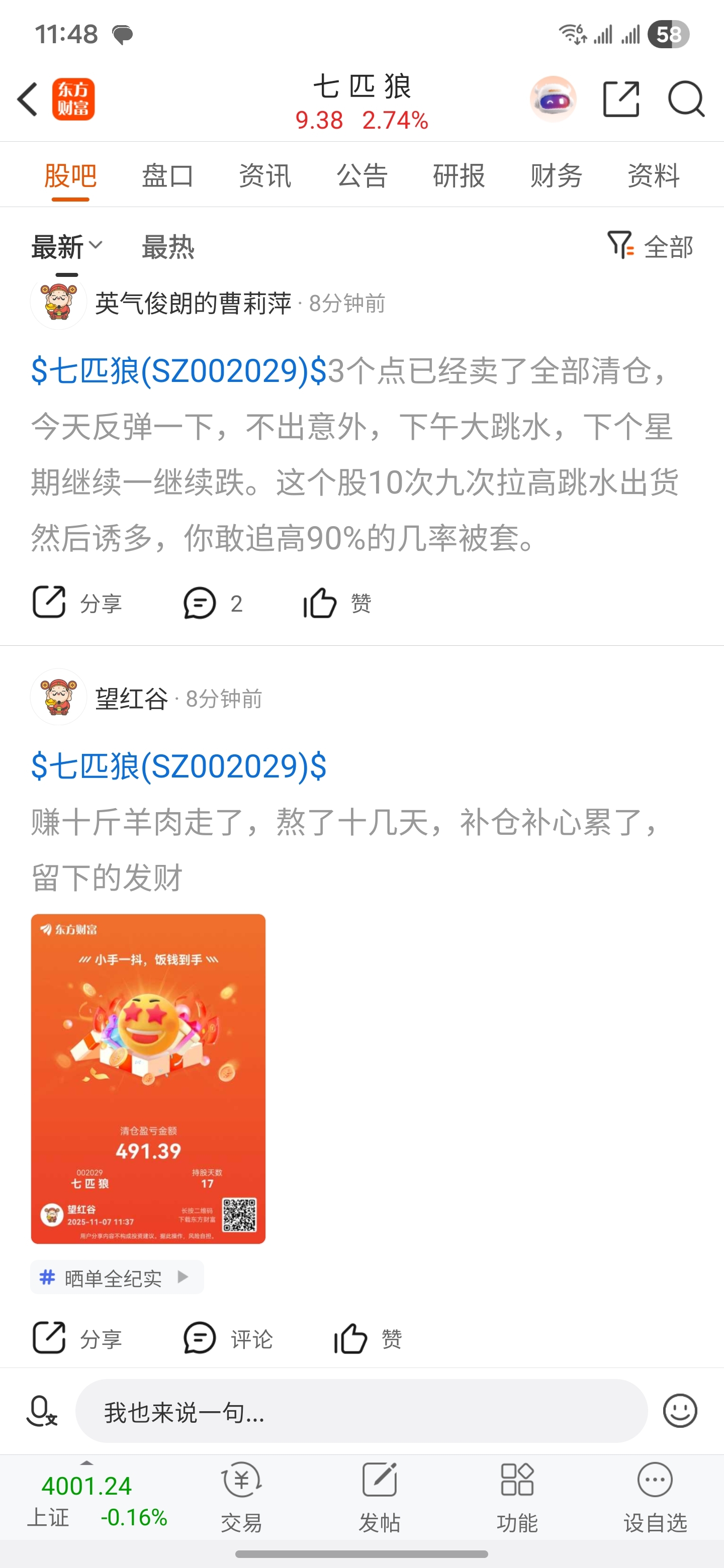 $七 匹 狼(SZ002029)$ 同样的票,同样的清仓,天差地别的格局#周末杂谈#