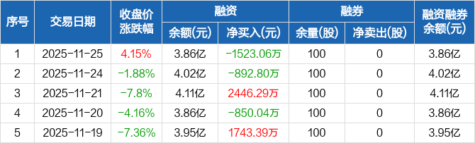 七匹狼:融资净偿还1523.06万元,融资余额3.86亿元(11-25)