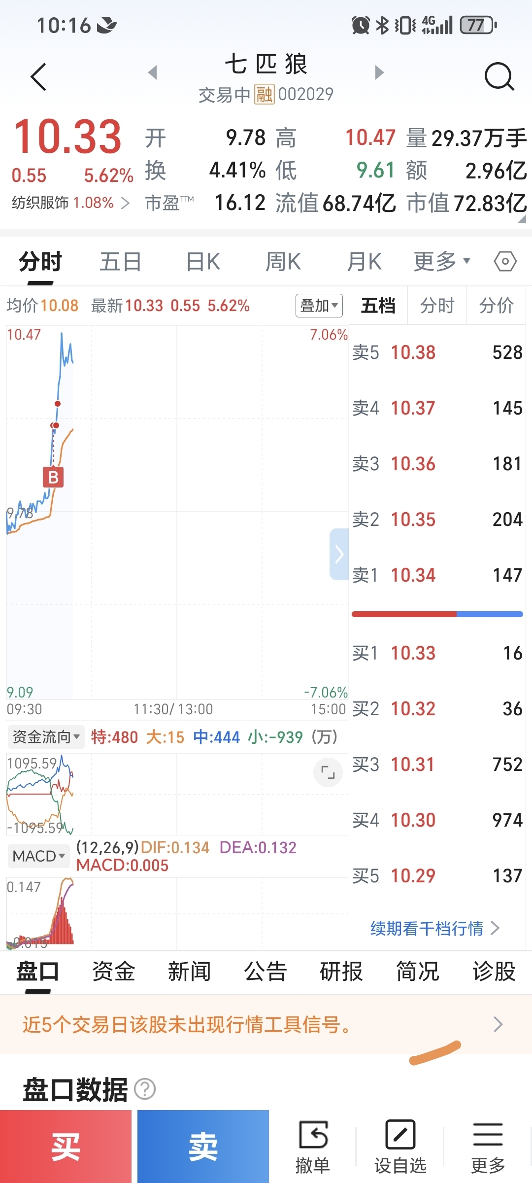 $七 匹 狼(SZ002029)$ 我的福股,我又回来了!
