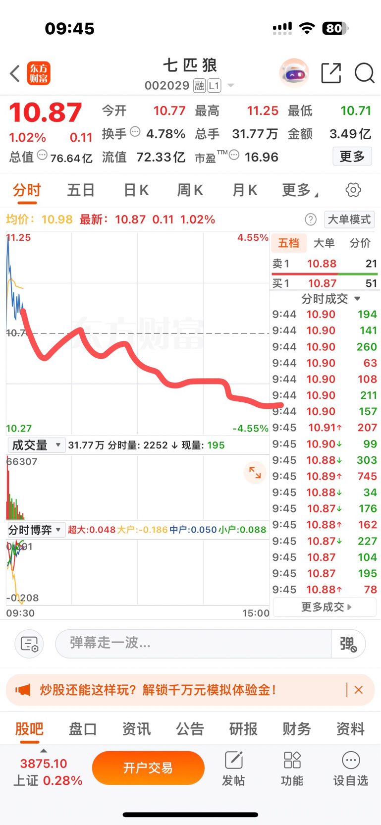 $七 匹 狼(SZ002029)$ 图形已画好,已出