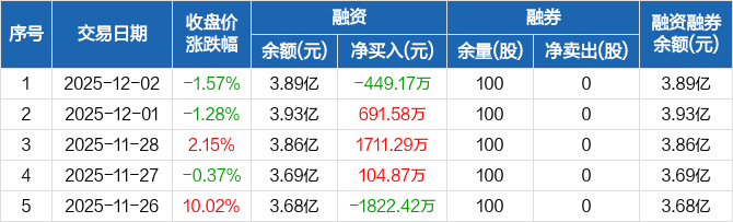 七匹狼:融资净偿还449.17万元,融资余额3.89亿元(12-02)