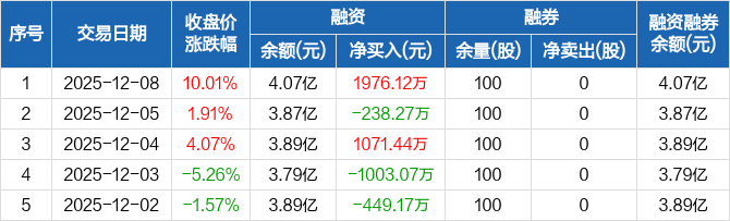七匹狼:融资净买入1976.12万元,融资余额4.07亿元(12-08)