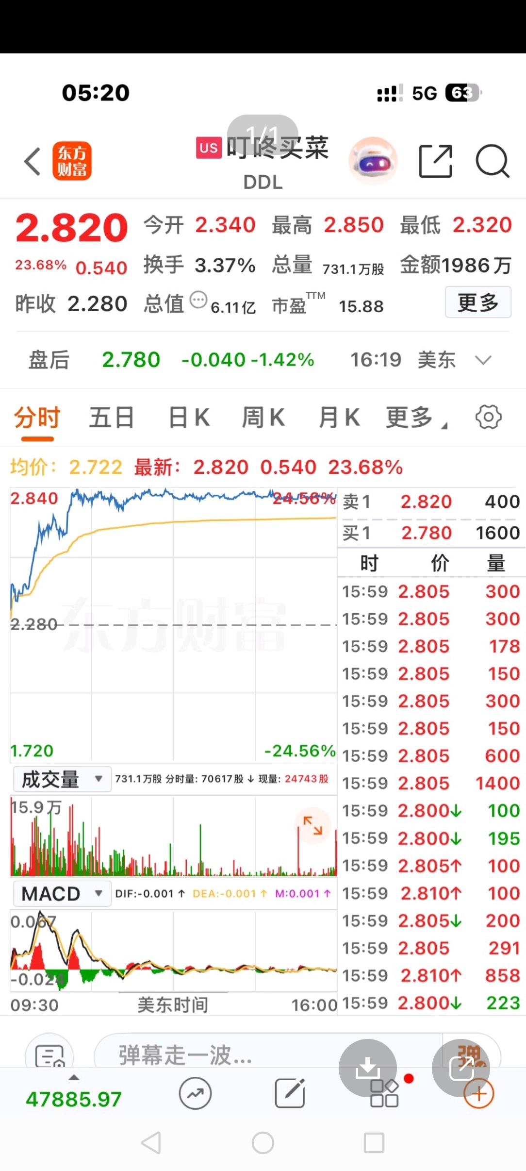 美股的叮咚买菜大涨24%!看来今天还得抱团消费