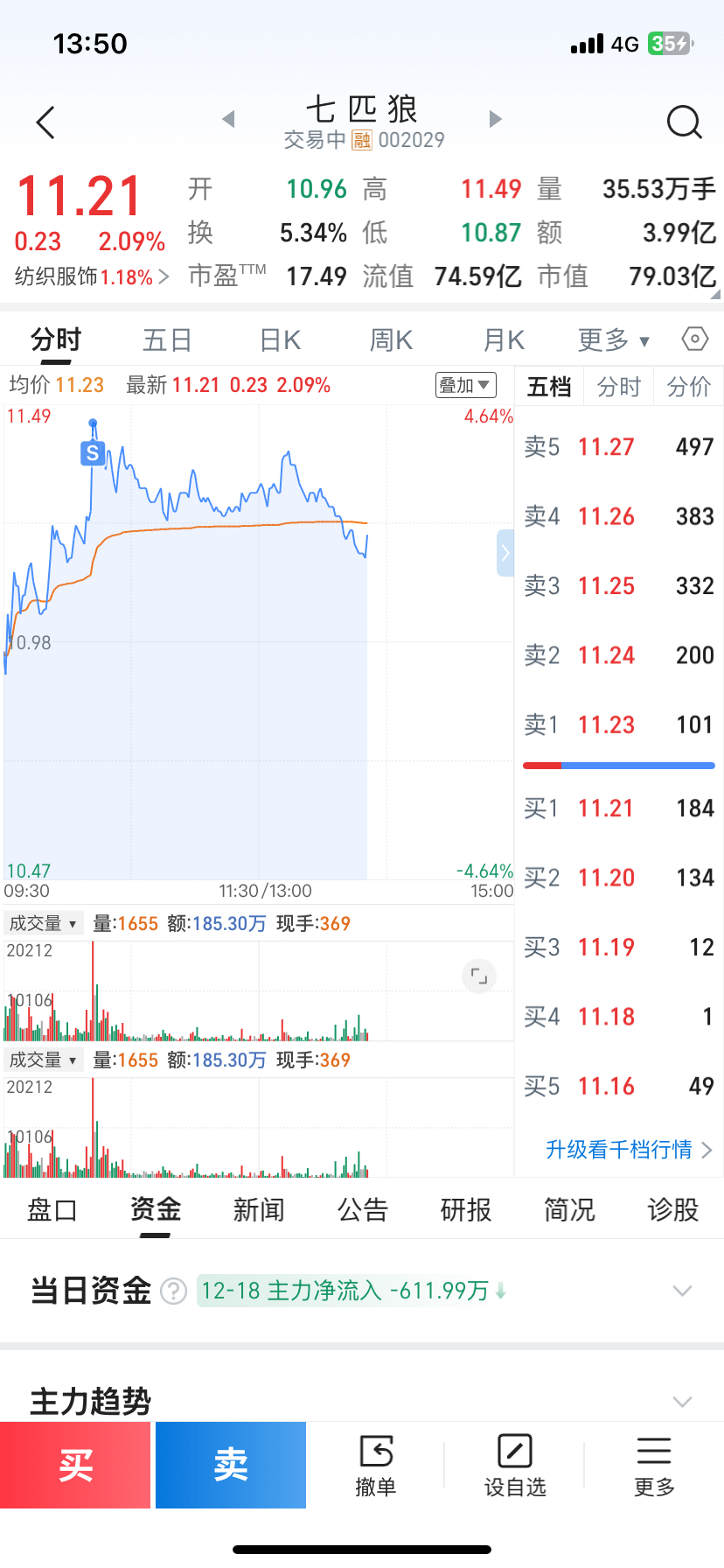 $七 匹 狼(SZ002029)$ 跑吧 量化票 两天6个点 有可惜休息一段时间了