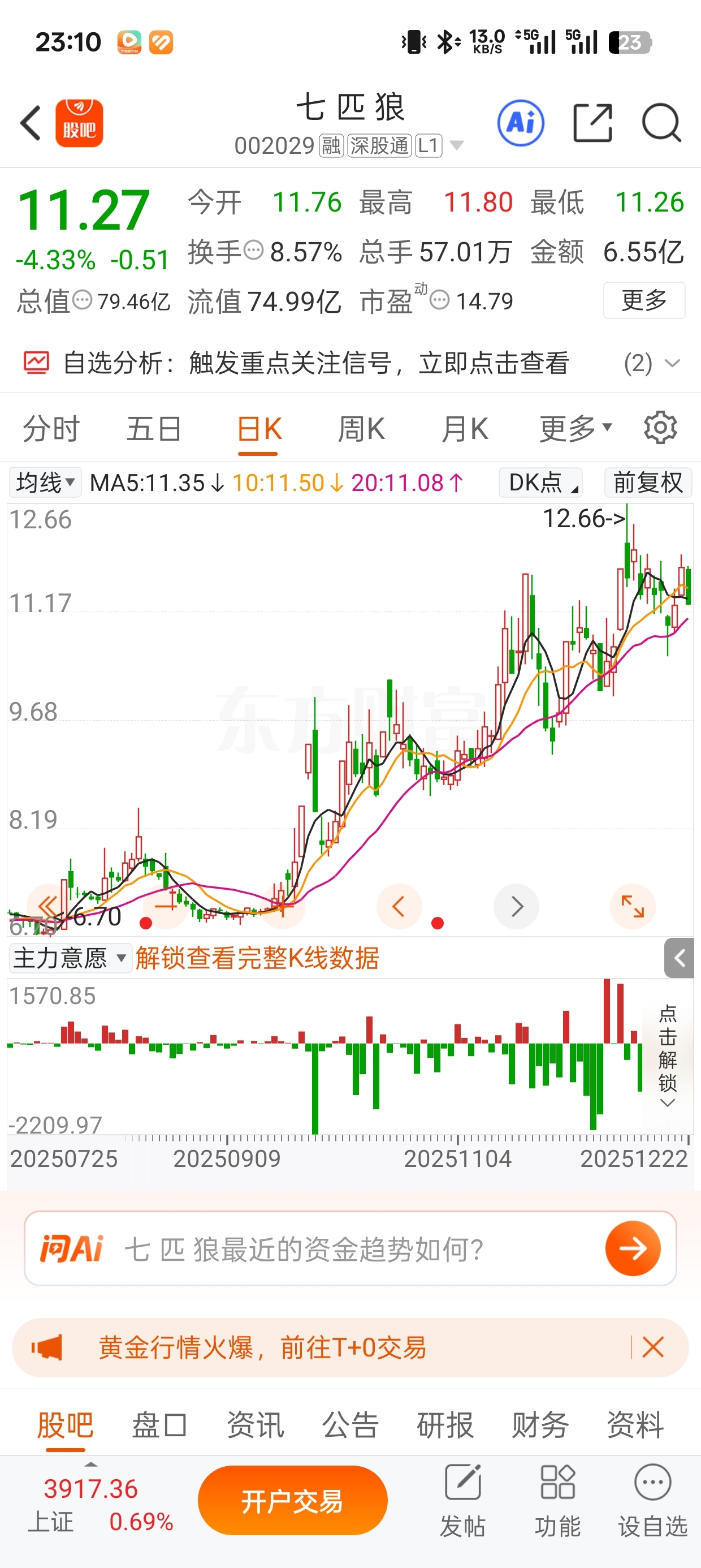 $七 匹 狼(SZ002029)$ 对子顶,不怕么?