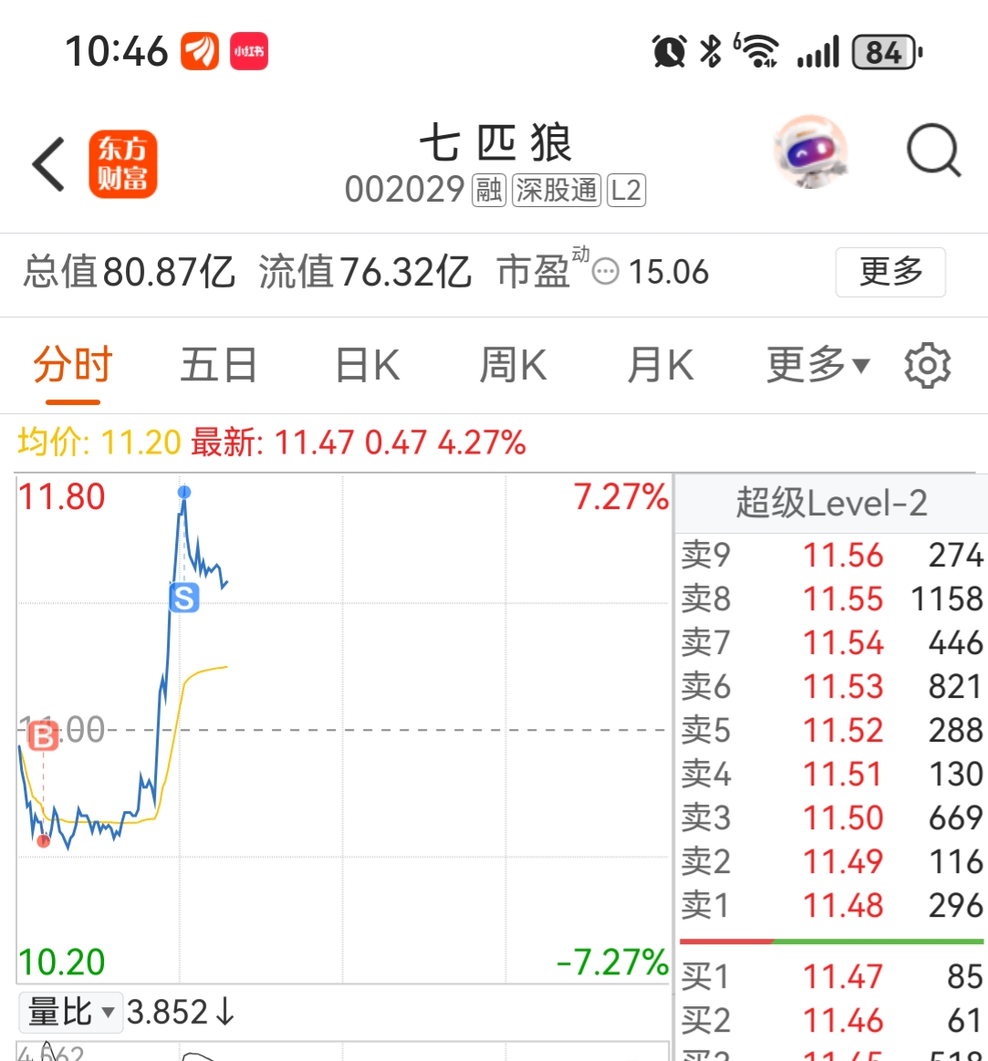 $七 匹 狼(SZ002029)$ 不陪你玩了,跑了