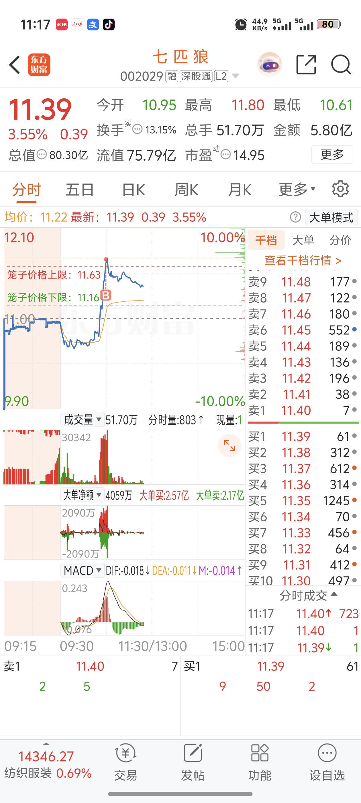 $七 匹 狼(SZ002029)$ 韭菜进场了