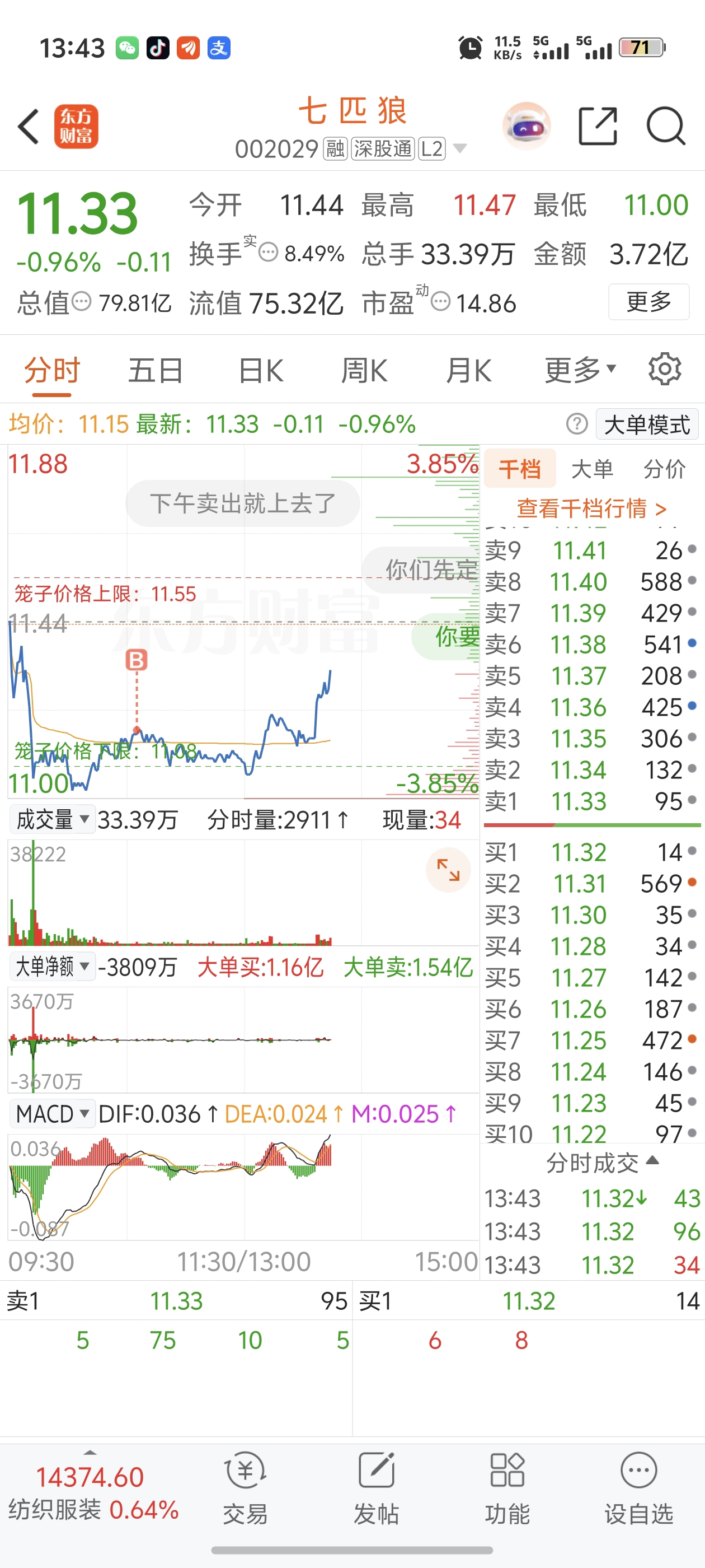 $七 匹 狼(SZ002029)$ 最终还是没忍住补仓了