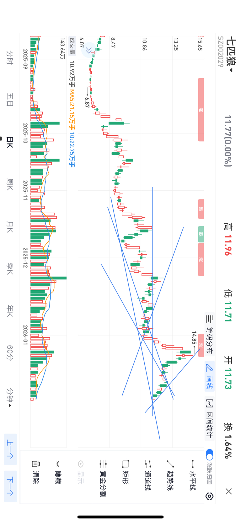 $七 匹 狼(SZ002029)$ 今天稳住就可以进仓位 想稳点的等突破三角区