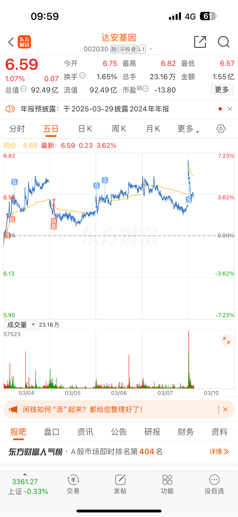 $达安基因(SZ002030)$ 此股不宜久留