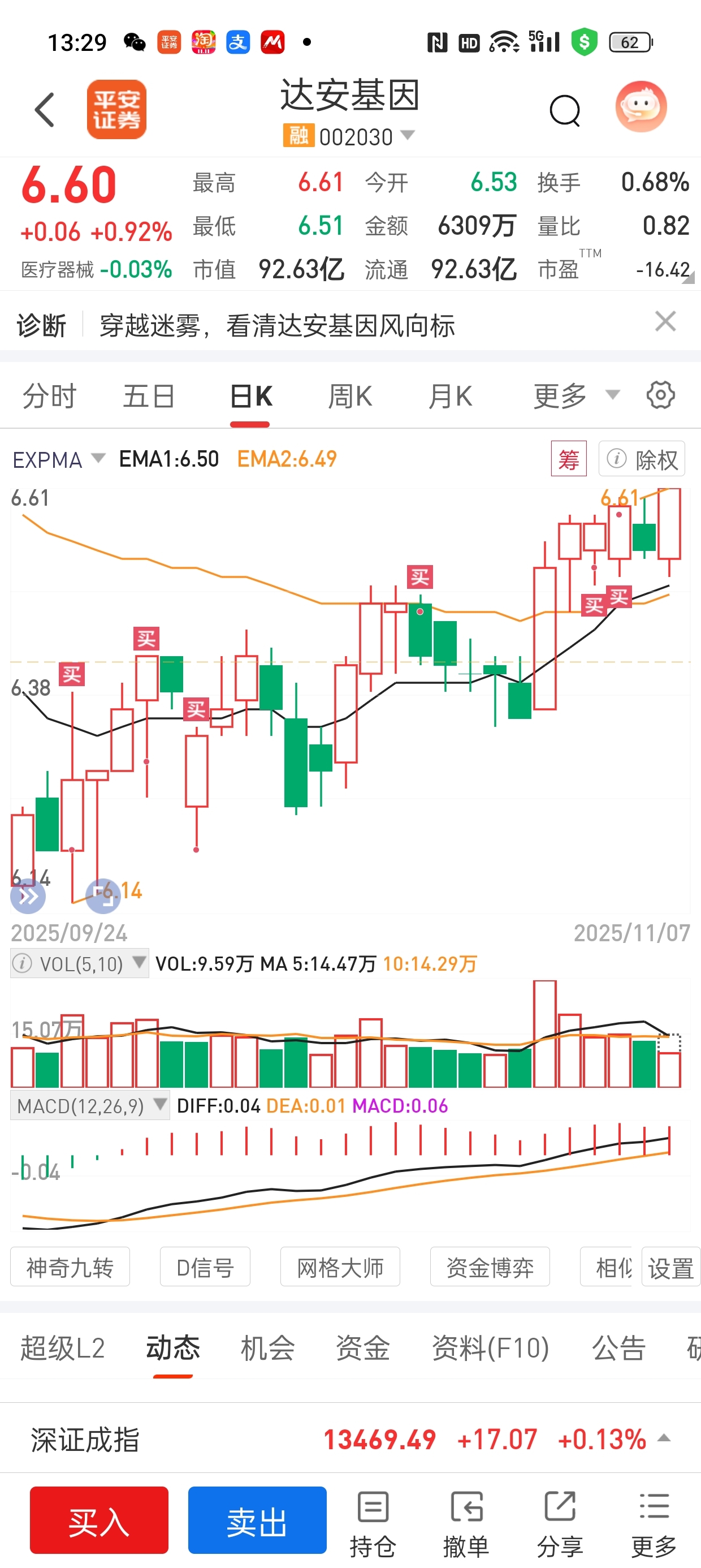 这个票的活跃度很低, 每天换手率也超级低,不知道主力在干啥, 每天1-3分的波动,有点寒颤,今天收盘站稳6.6,下周希望来个轰轰烈烈的大涨,吸引一点人气,