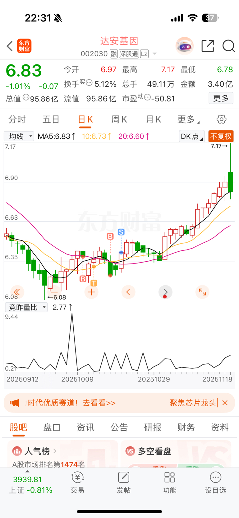 $达安基因(SZ002030)$ 拿不住,根本拿不住