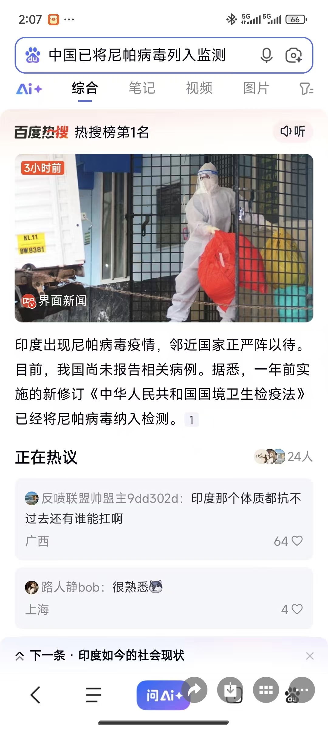 近日,印度西孟加拉邦暴发尼帕病毒疫情,1人危重近百人居家隔离,该病毒死亡率达40%到75%,泰国和尼泊尔已分别加强对入境印度游客以及机场、边境口岸的健康监测和检疫检测。