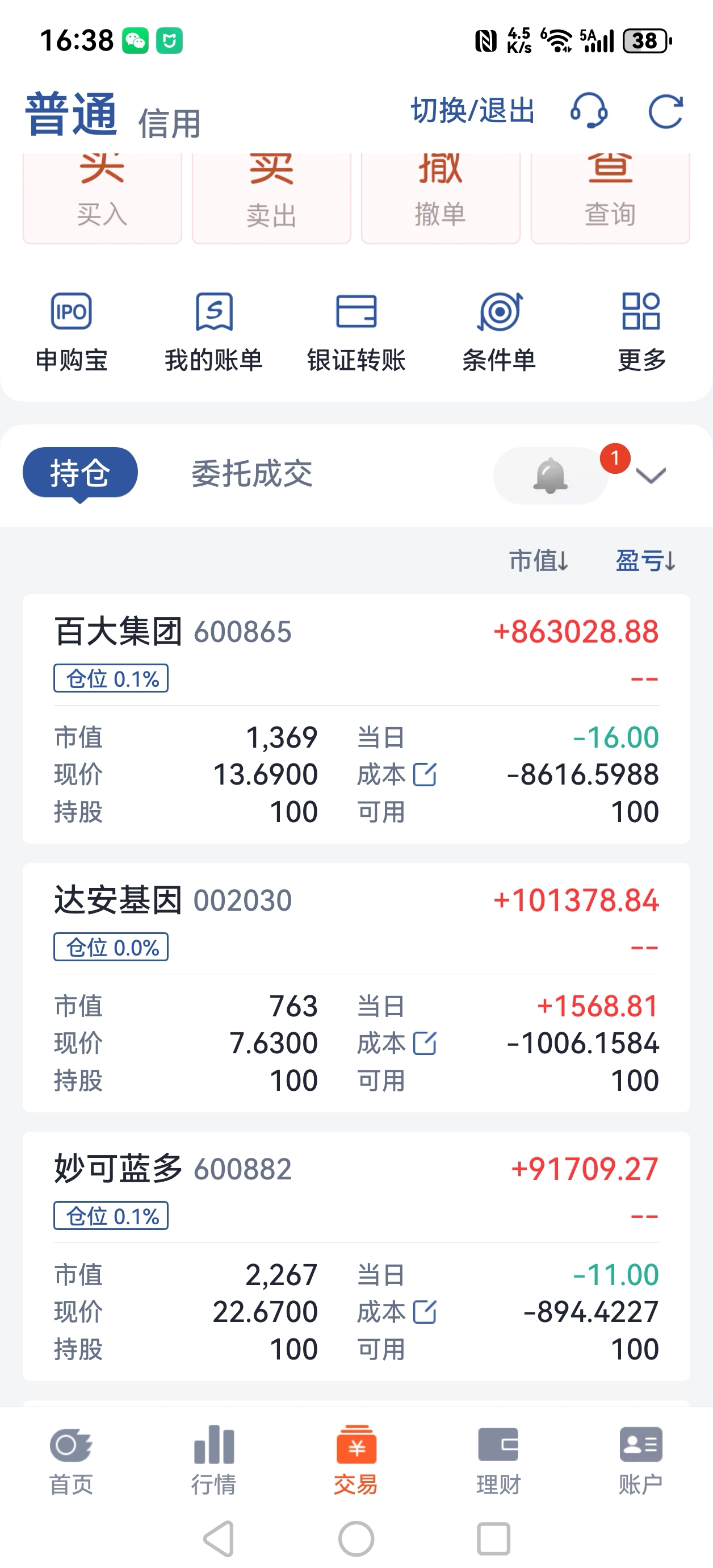 留100股看看达安基因后面会到什么价位。