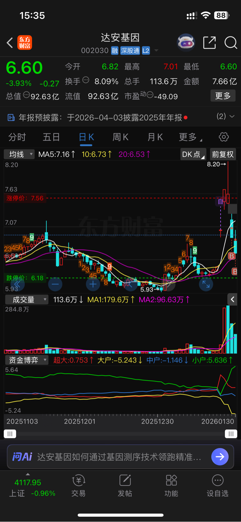 $达安基因(SZ002030)$ 我不走了嘿嘿,我当股东!不管了 ,你爱咋咋把 ,就几万块钱 ,有本事退市,不赚钱不走!