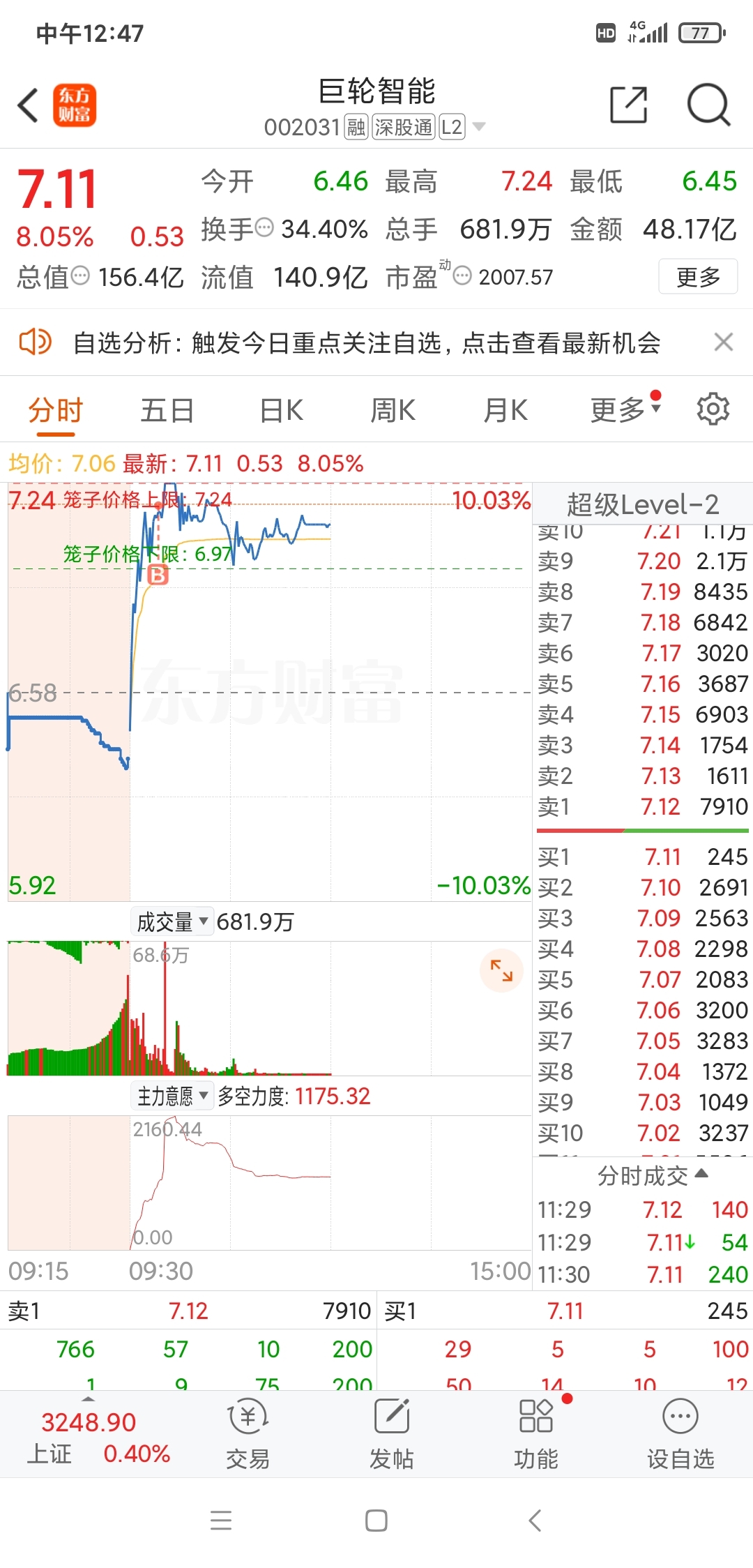 $巨轮智能(SZ002031)$ 想不到几百万封单也会开,套住也认了