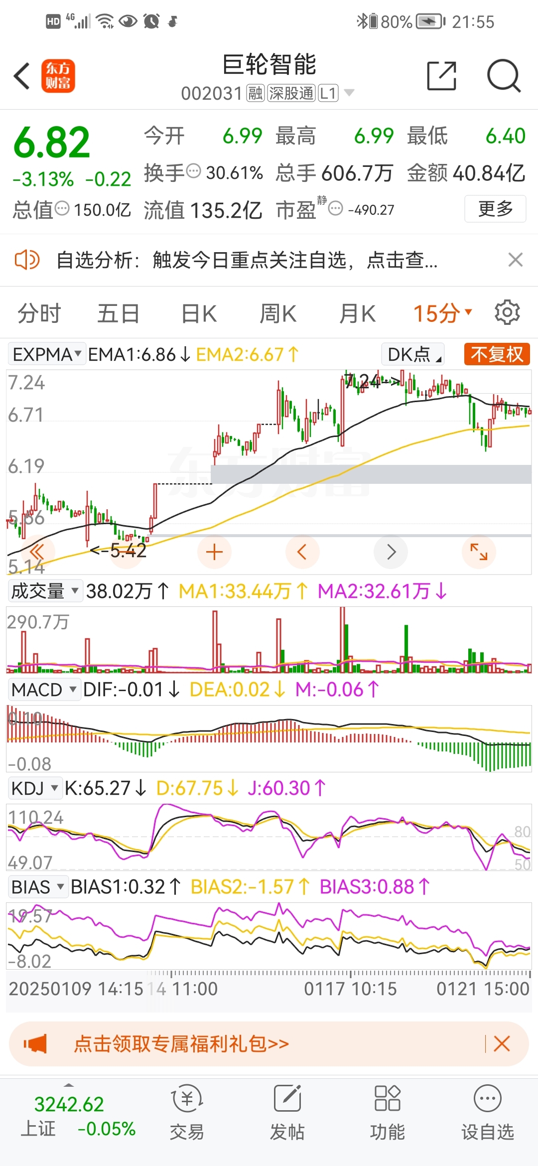 $巨轮智能(SZ002031)$ #复盘记录# 资金出逃!