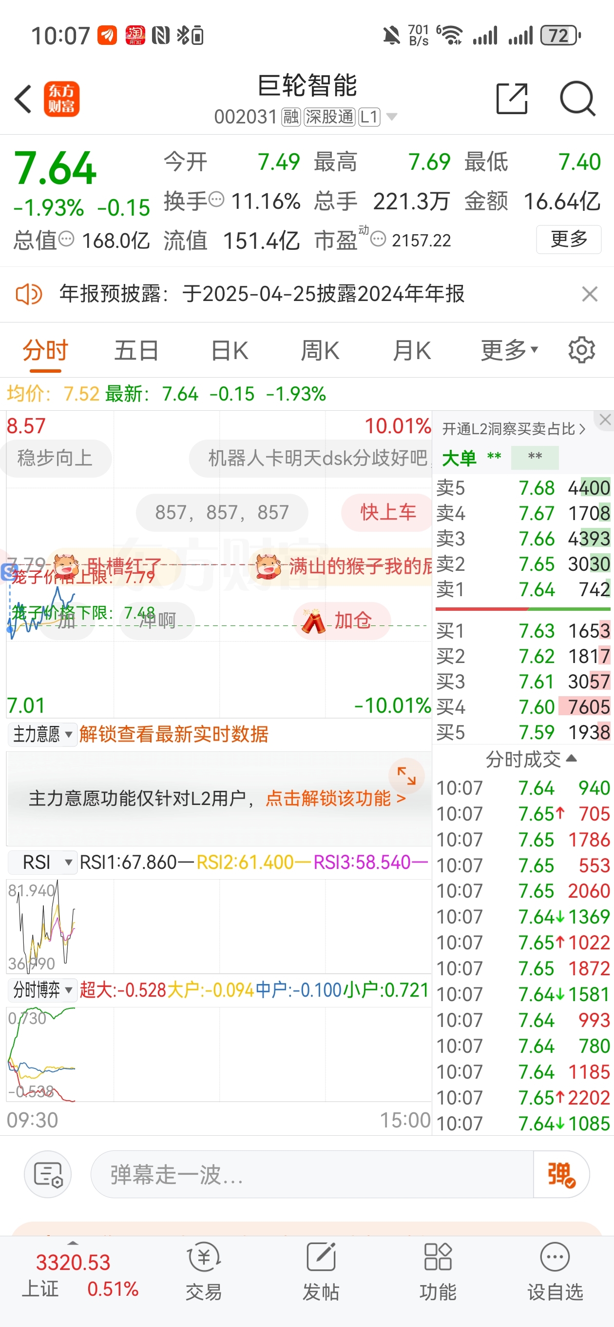 $巨轮智能(SZ002031)$ 卖在全天最低点