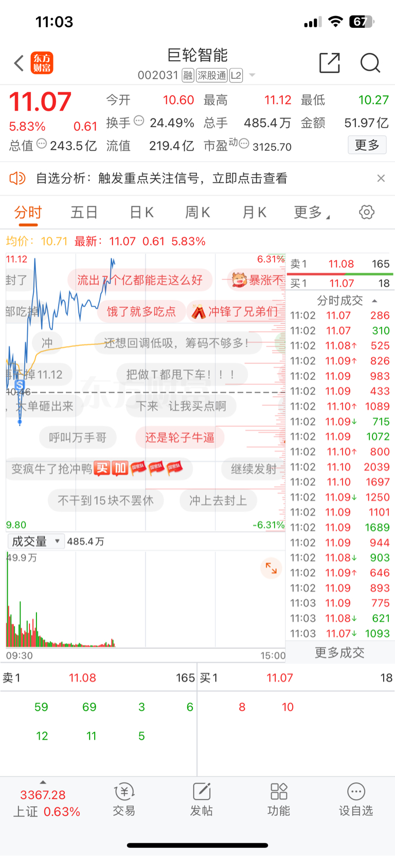 $巨轮智能(SZ002031)$ 天天卖飞…