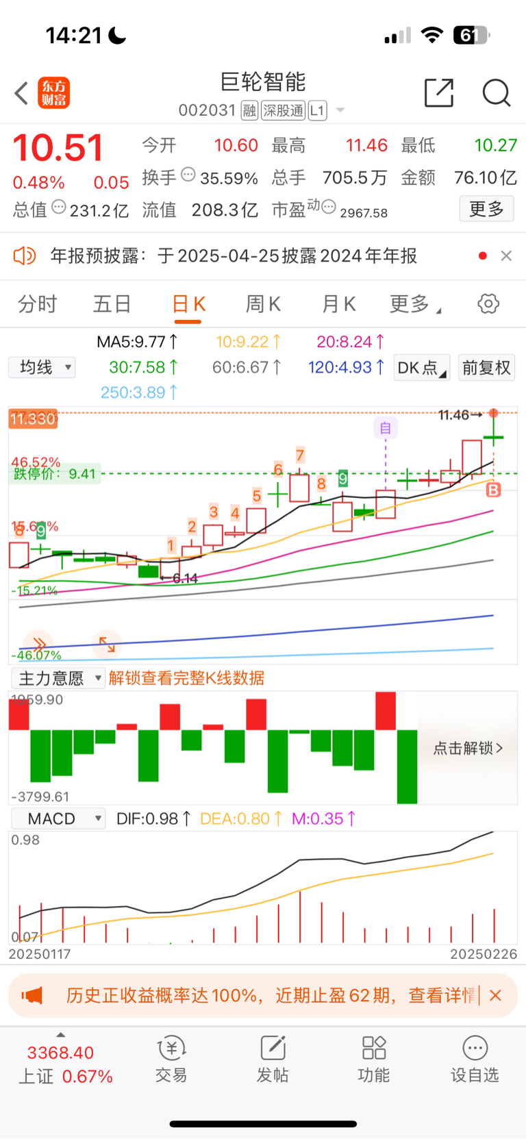 $巨轮智能(SZ002031)$ 看看自己好搞笑