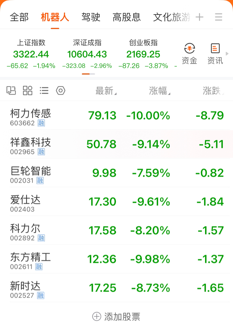 机器人到头了,关注的股全部接近跌停