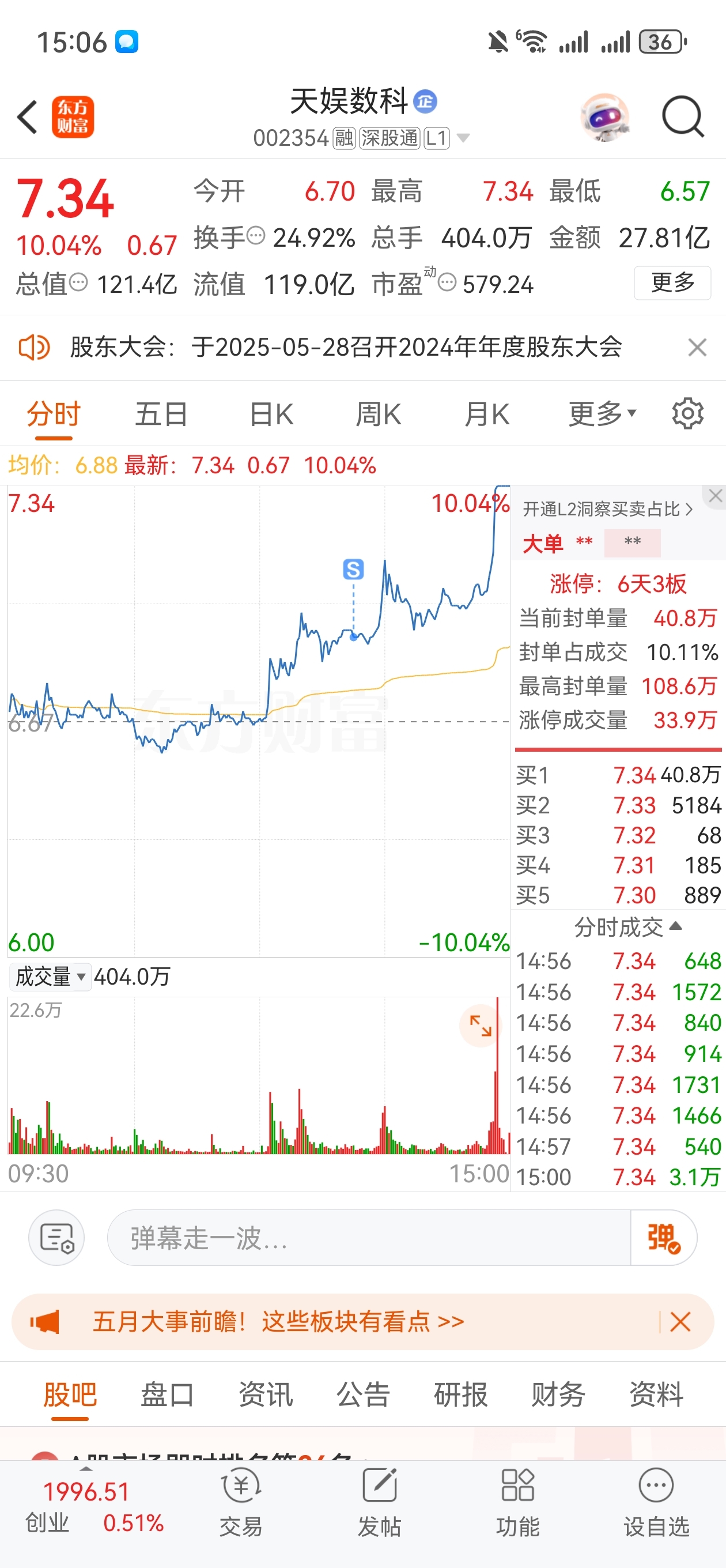 半仓操作,买了巨轮,卖了天娱,结果天娱涨停了,不知道是福是祸呢。