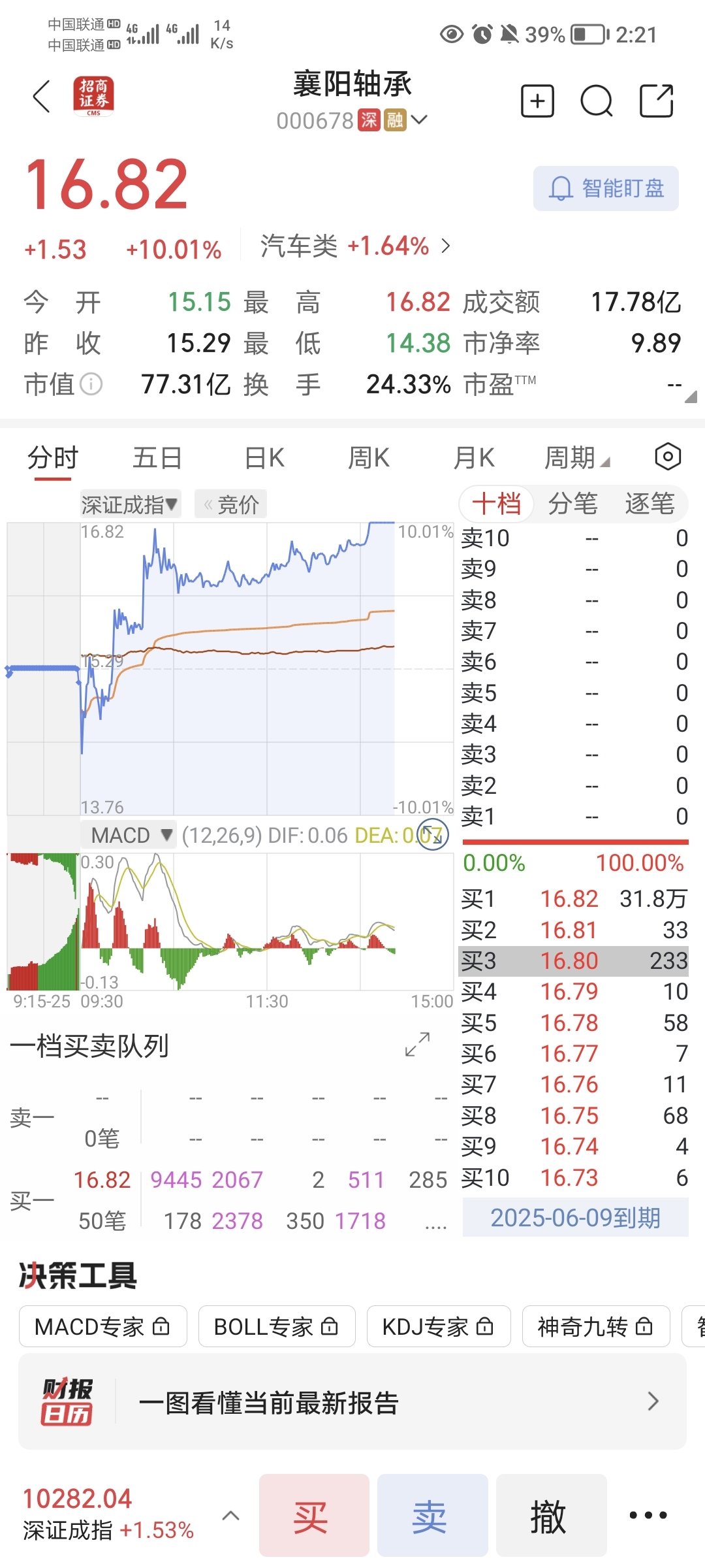 襄阳轴承涨停了,小轮子你在等什么,给我冲呀