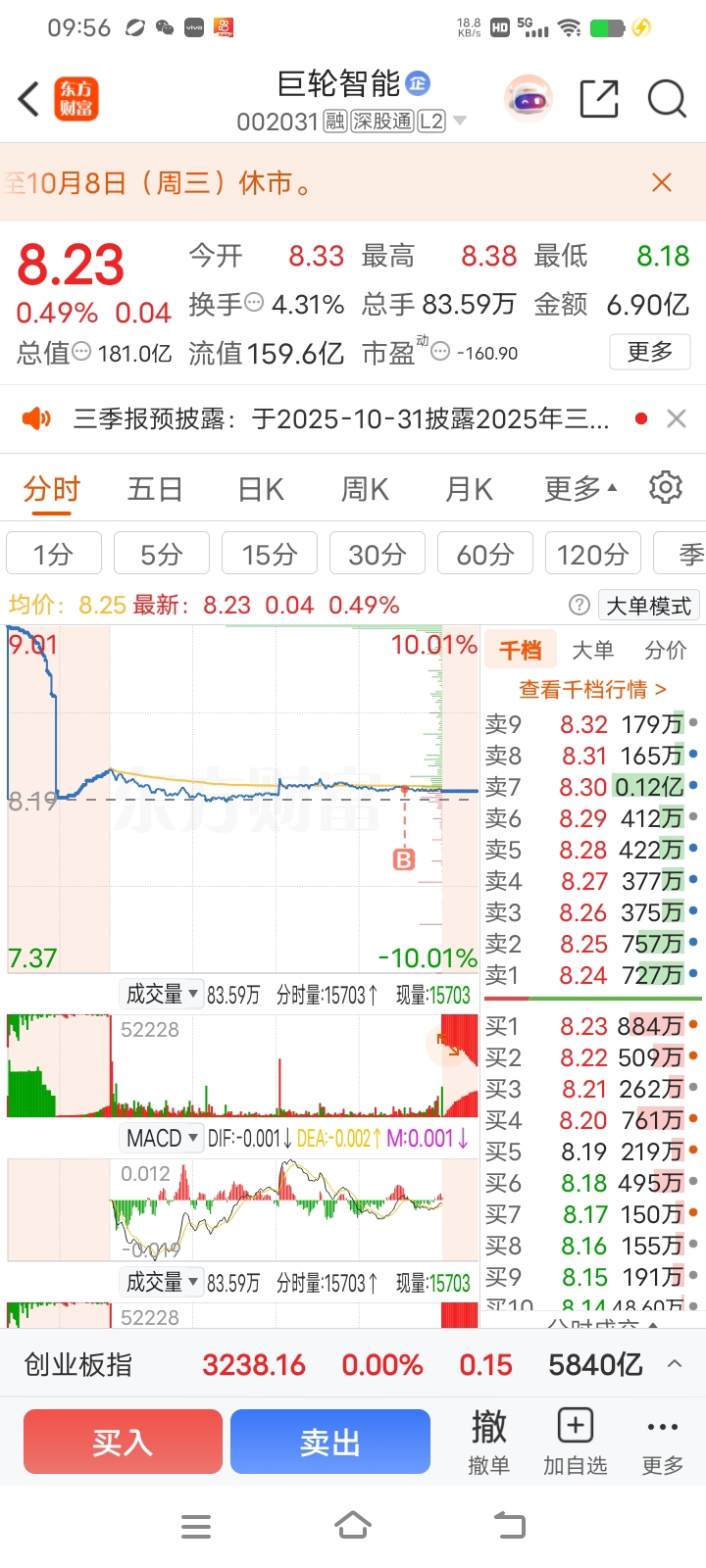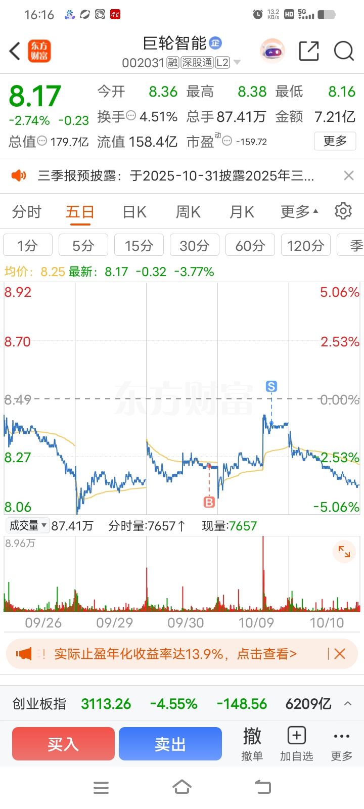 观察、等待了至少半个月 ,还能跌哪去 ,随时反弹$巨轮智能(SZ002031)$