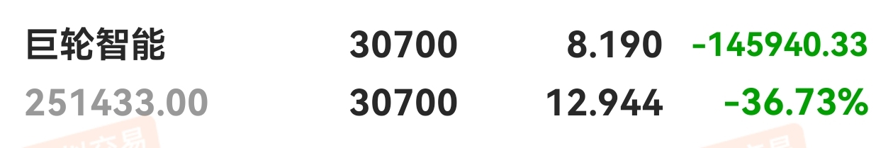 $巨轮智能(SZ002031)$ 亏了36个点了,咋办啊,呜呜呜