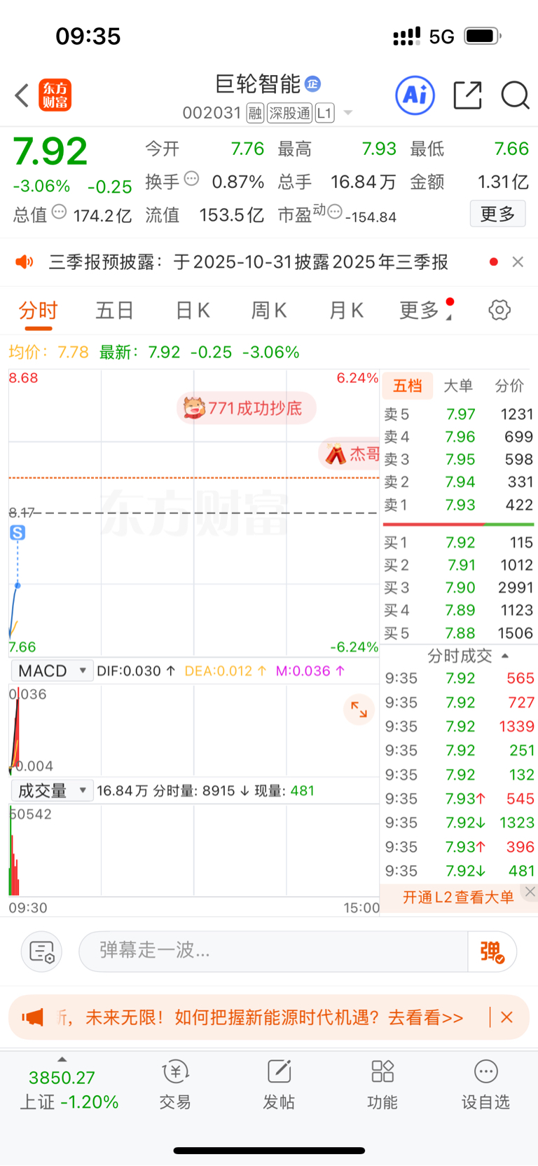 $巨轮智能(SZ002031)$ 感谢主力手下留情