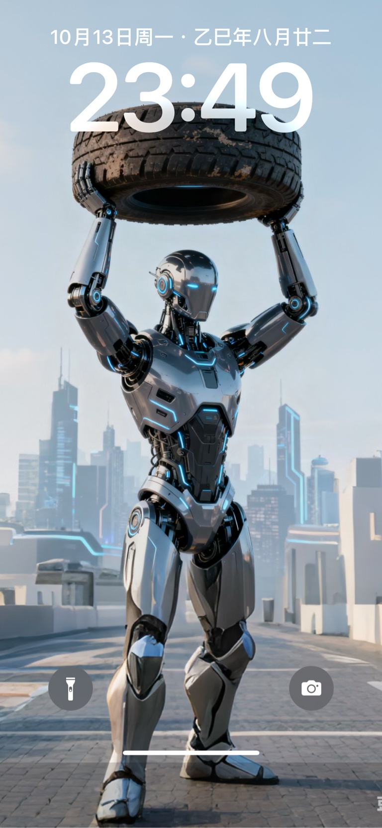 这是我的手机壁纸,机器人举着轮胎,大哥争气点