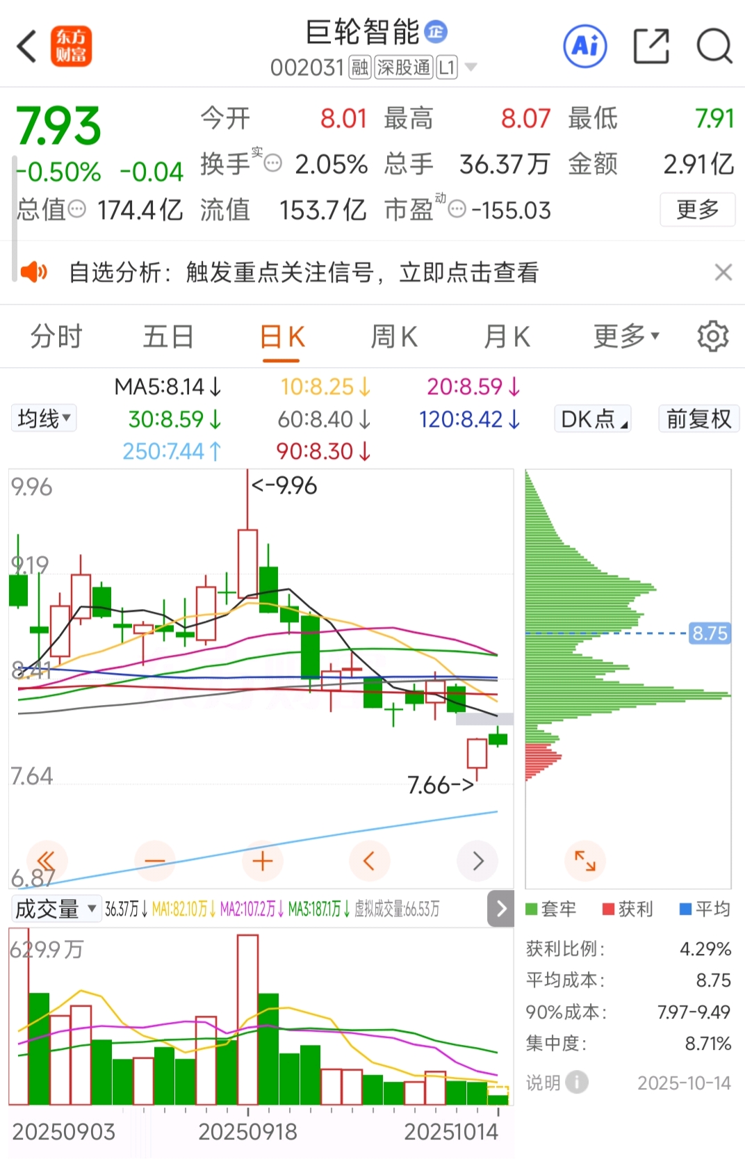 $巨轮智能(SZ002031)$ 这个密集的套牢盘真可怕,成交额估计得快50亿才能上去。。