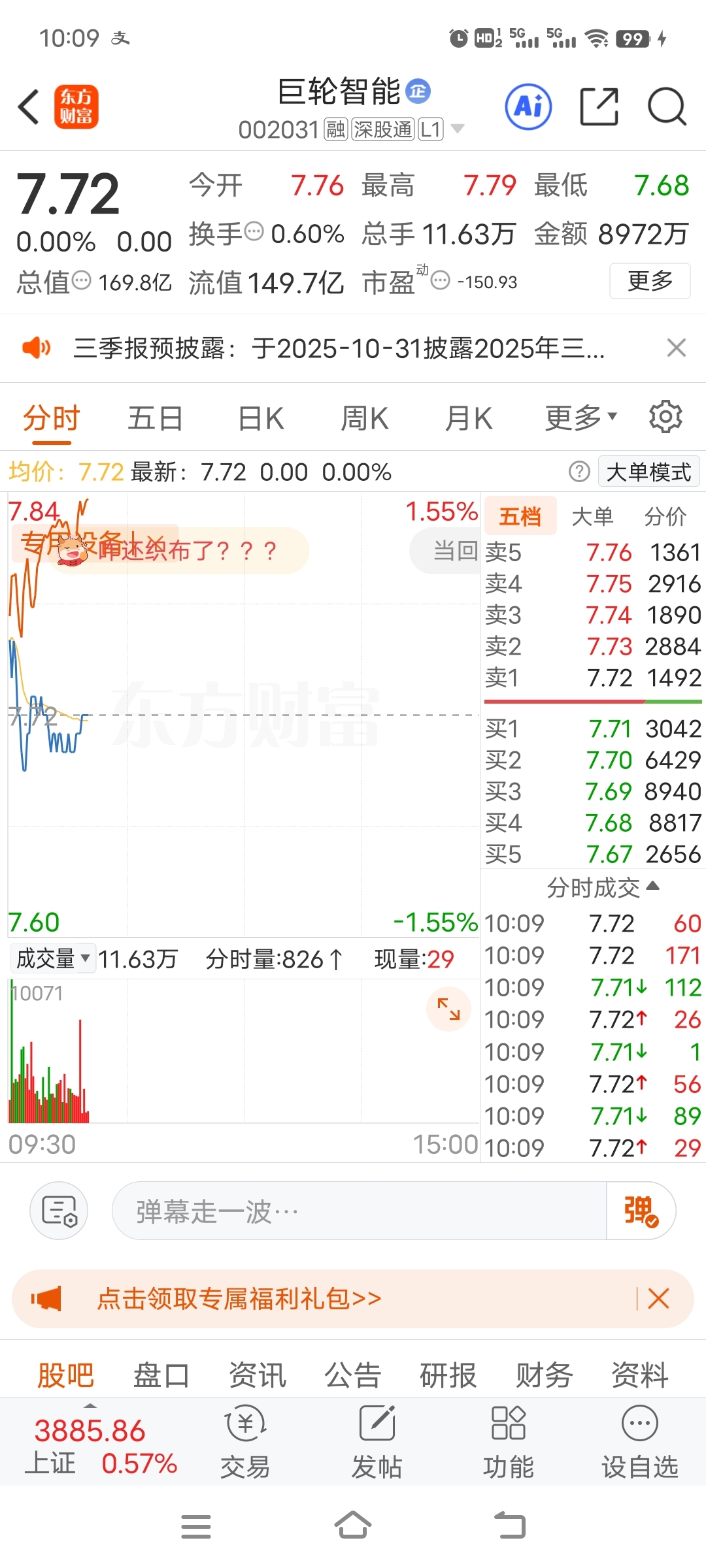 $巨轮智能(SZ002031)$ 看看吧上涨不跟还得大跌