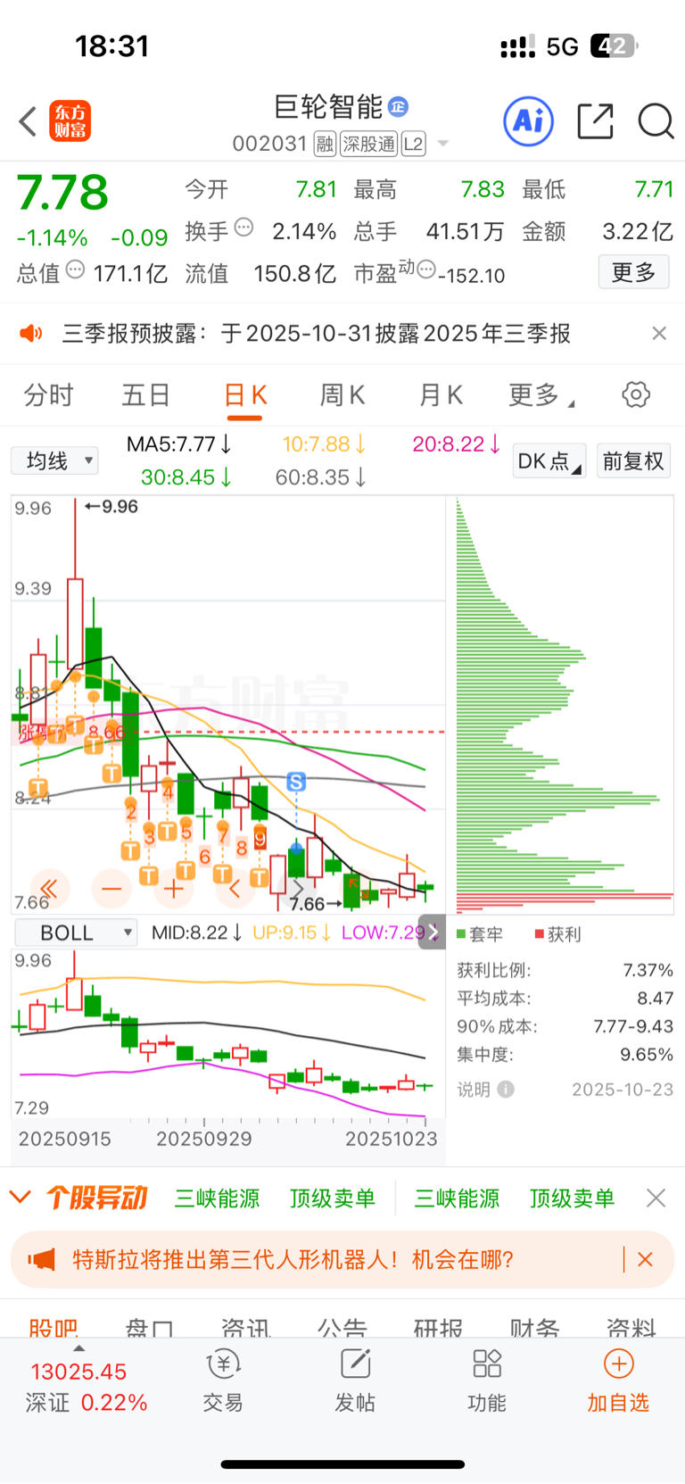 $巨轮智能(SZ002031)$ 920的成本熬到8.01忍不住了清仓了,一周过去了这个破轮子还是这个样子,真是拿破仑,一点买回来的欲望都没有
