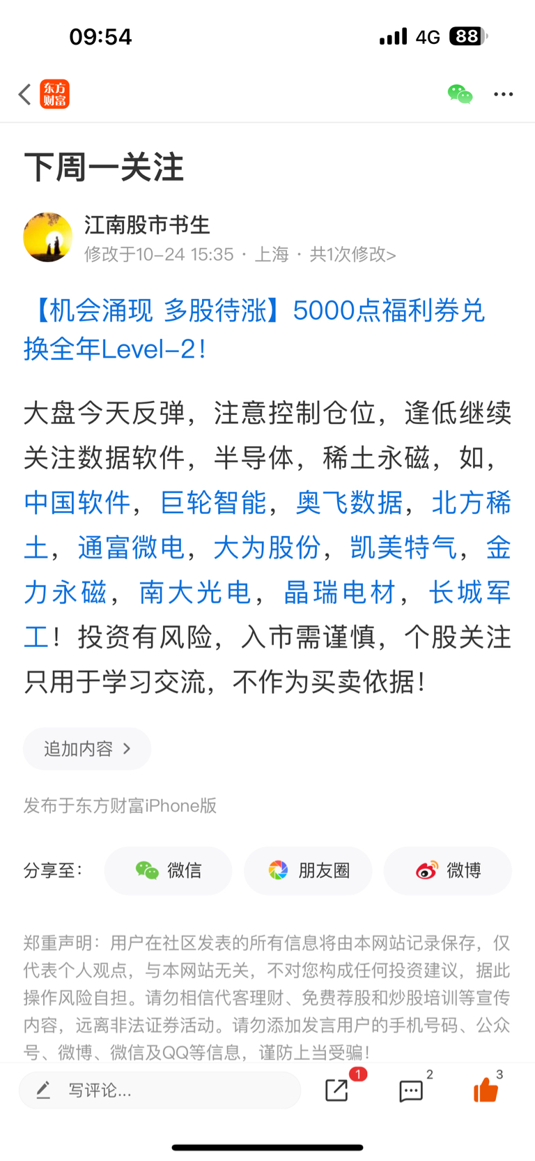 温馨提示: 1.根据《证券法》规定,禁止编造、传播虚假信息或者误导性信息,扰乱证券市场;2.用户在本社区发表的所有资料、言论等仅代表个人观点,与本网站立场无关,不对您构成任何投资建议。用户应基于自己的独立判断,自行决定证券投资并承担相应风险。《东方财富社区管理规定》