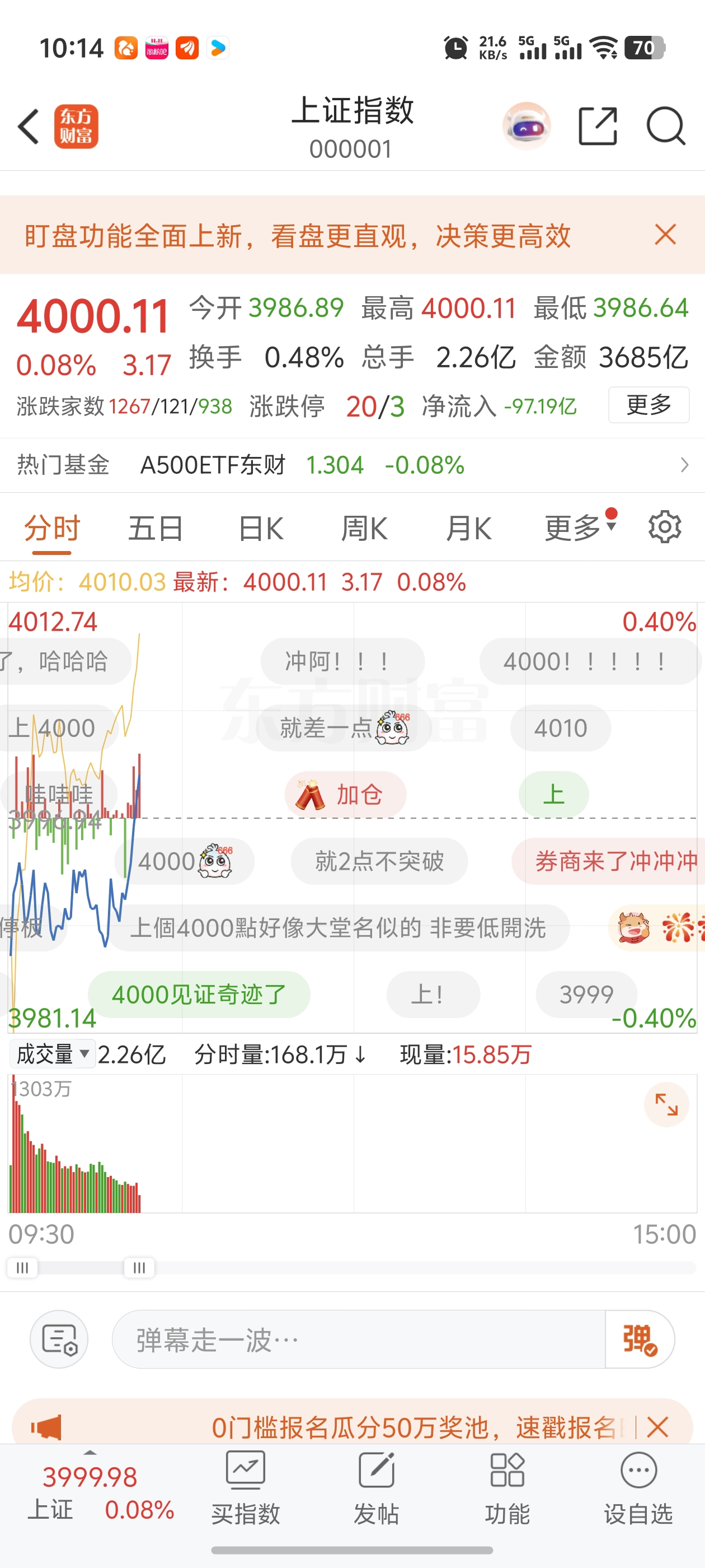 大盘4000点了,巨轮你做个人行吗,涨一个呗