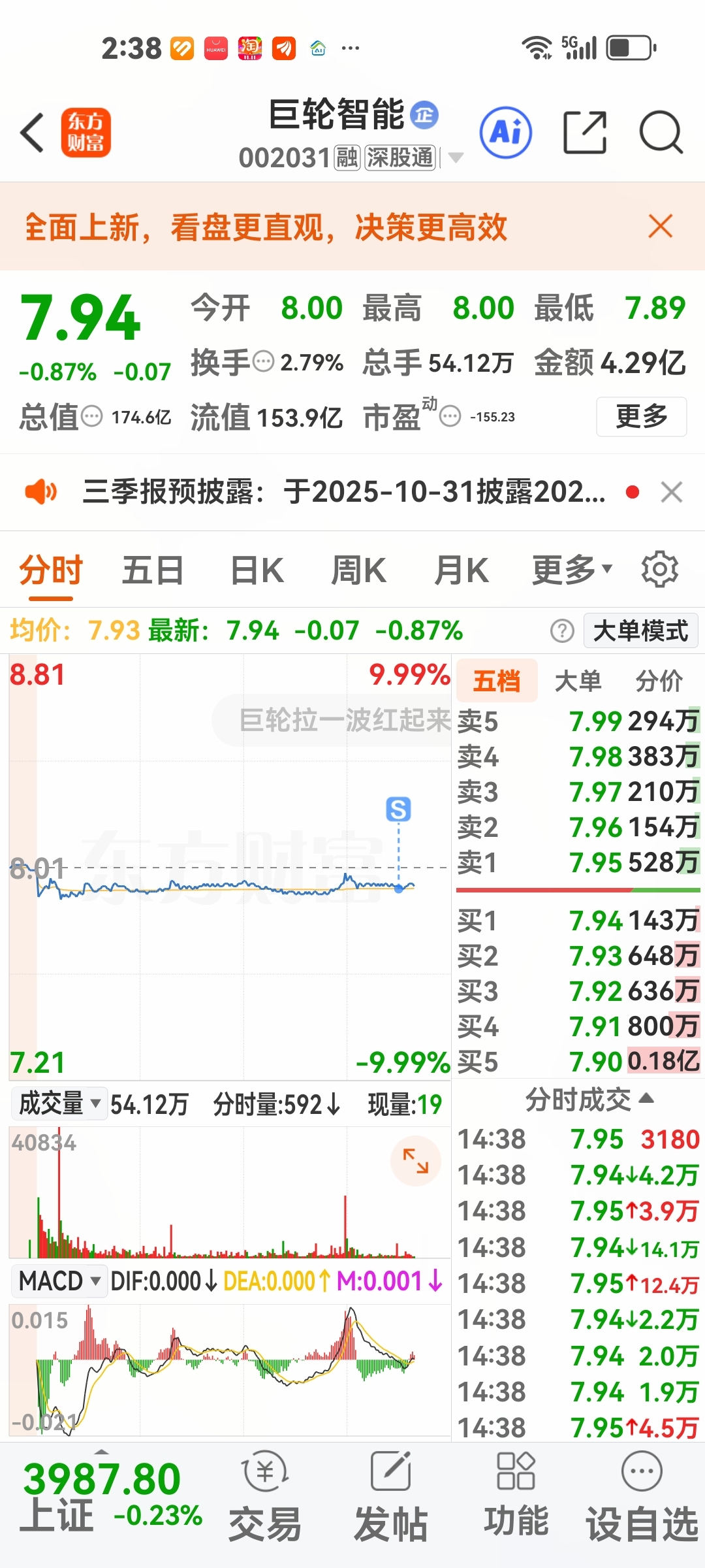 $巨轮智能(SZ002031)$ 这垃圾幸亏买了,买了安泰。