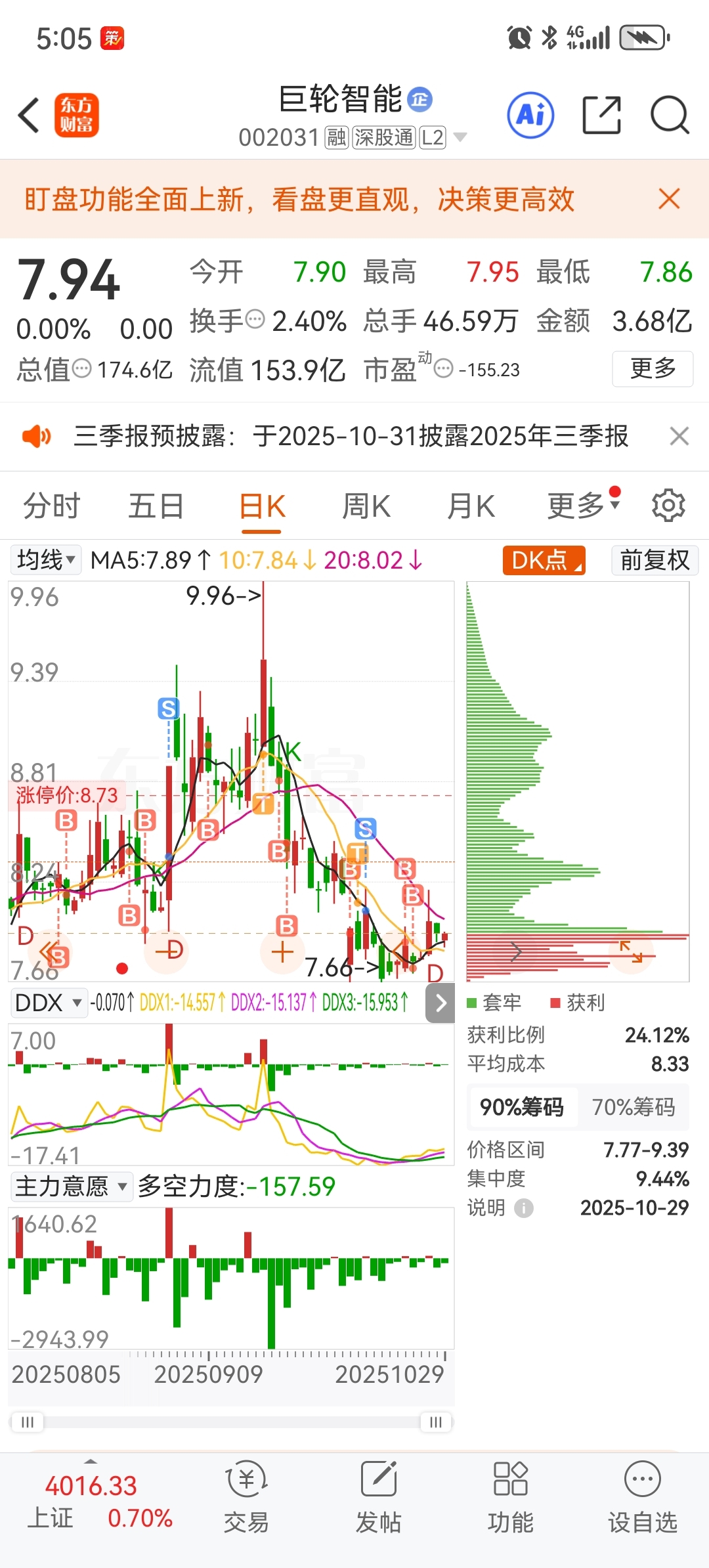 $巨轮智能(SZ002031)$ 求大神指导,现在亏损5个点,是继续持仓还是割肉
