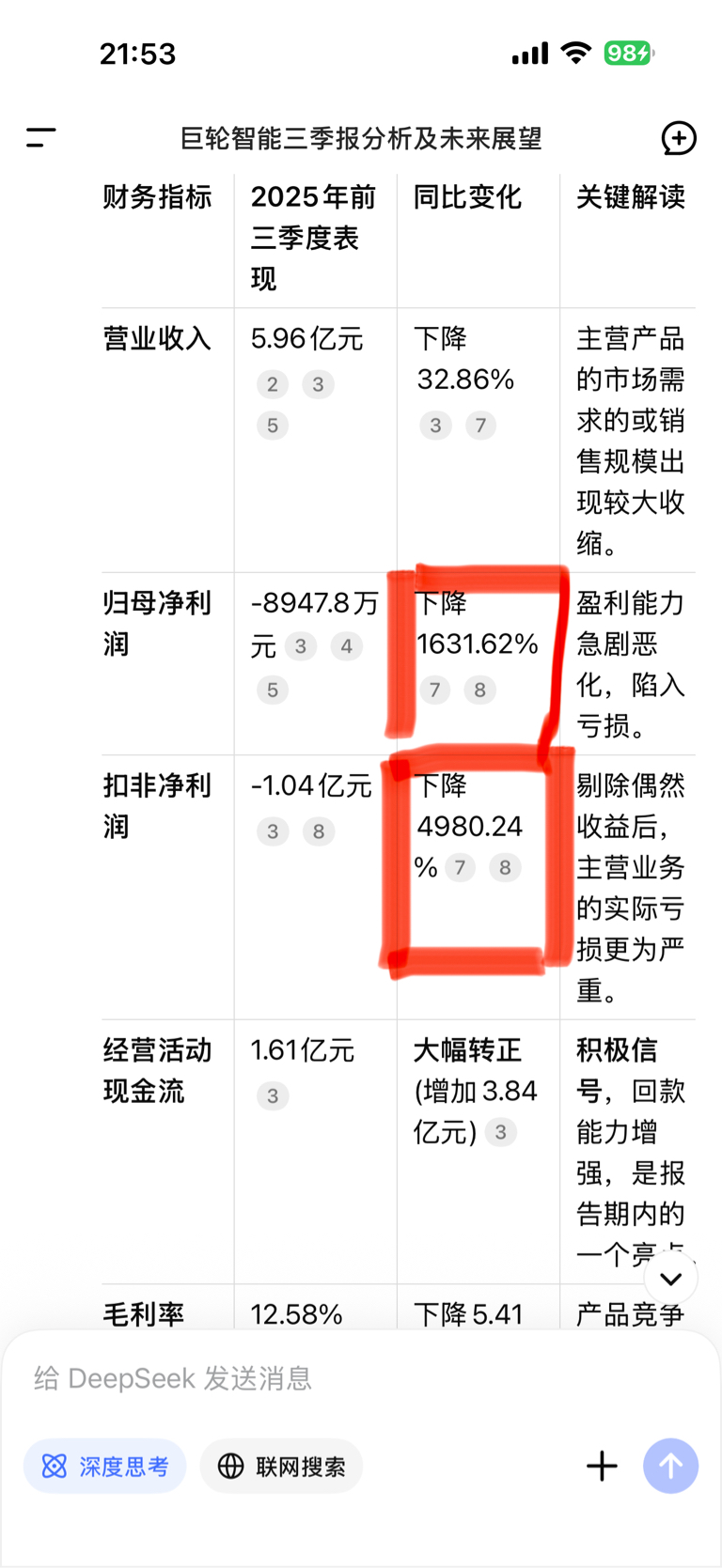 $巨轮智能(SZ002031)$ 这两项是什么意思?吓死人啊。