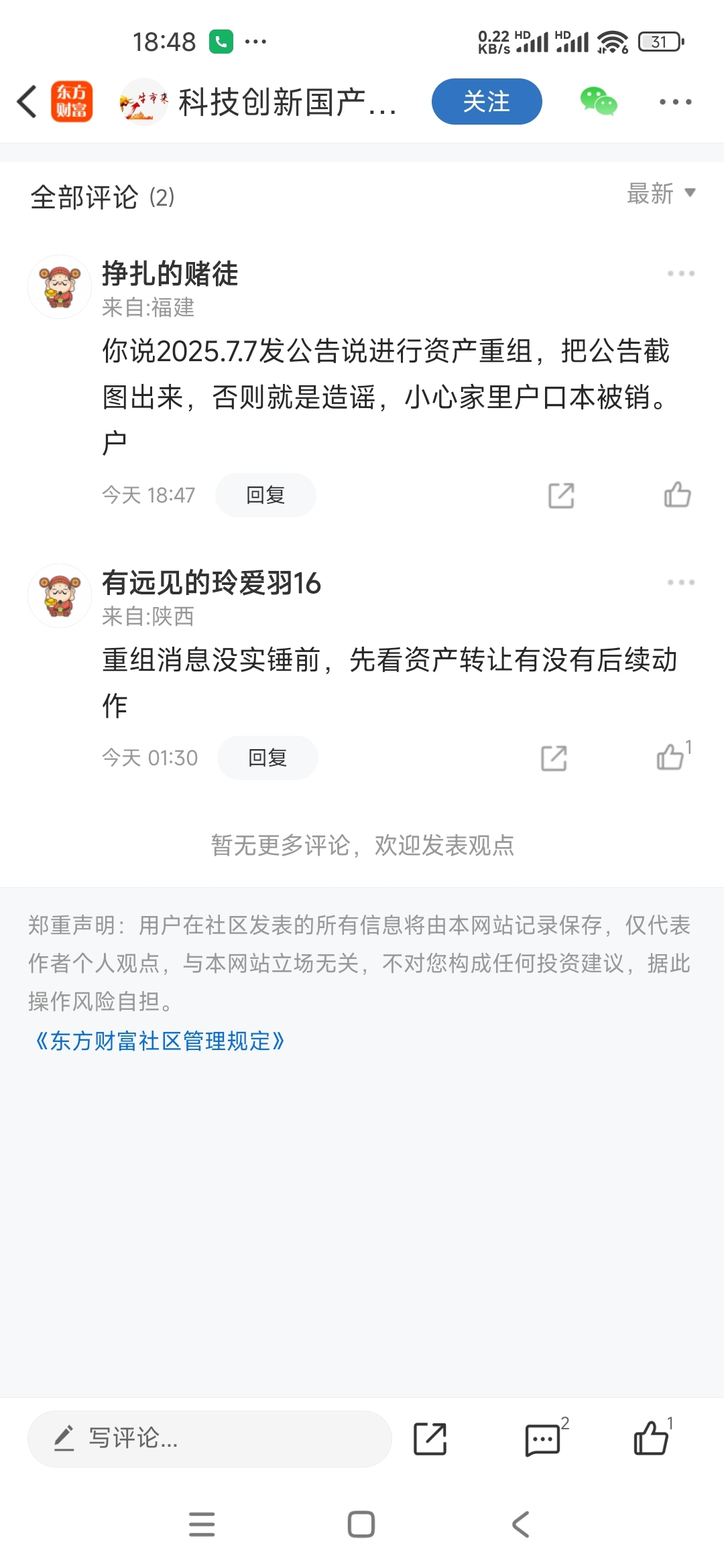 温馨提示: 1.根据《证券法》规定,禁止编造、传播虚假信息或者误导性信息,扰乱证券市场;2.用户在本社区发表的所有资料、言论等仅代表个人观点,与本网站立场无关,不对您构成任何投资建议。用户应基于自己的独立判断,自行决定证券投资并承担相应风险。《东方财富社区管理规定》
