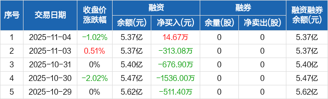巨轮智能:融资净买入14.67万元,融资余额5.37亿元(11-04)